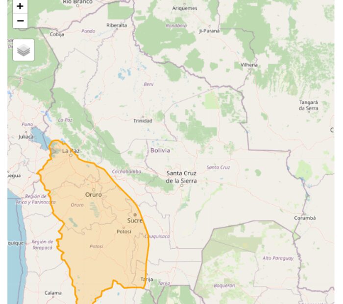 En tanto que, en Oruro, se prevén vientos también con velocidades entre 40 y 70 kilómetros por hora en las provincias Tomás Barrón, Cercado, Dalence, Poopó, Avaroa, Sebastián Pagador, Saucari, Nor y Sud Carangas, San Pedro de Totora, Carangas, Ladislao Cabrera, Litoral, Sajama, Sabaya y Mejillones.