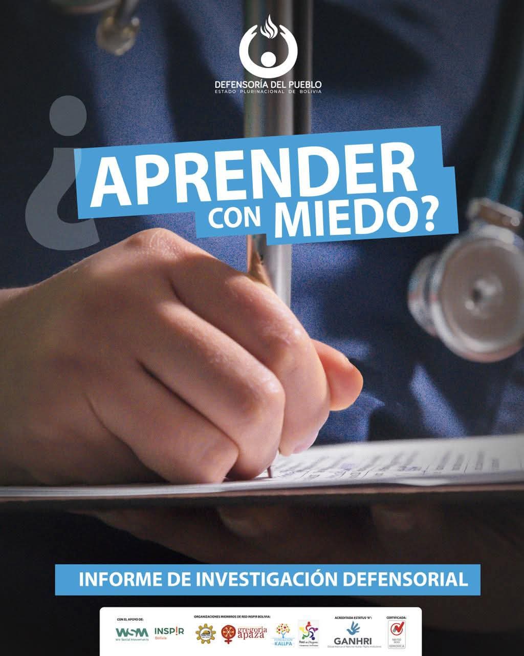 La Defensoría del Pueblo anunció la presentación del informe de investigación defensorial “Aprender con miedo”, un estudio que expone la vulneración de derechos de internos y médicos residentes dentro del Sistema Nacional de Salud en Bolivia. El evento se desarrollará este miércoles 29 de abril, desde las 09:00, en el auditorio de la Facultad de Medicina de la UMSA, ubicado en la avenida Saavedra de la zona Miraflores, en la ciudad de La Paz.