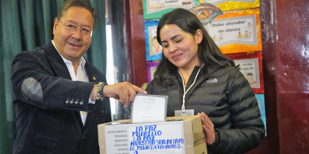 Durante la jornada electoral, el mandatario votó en el colegio Miguel de Cervantes, en Miraflores (La Paz). Allí recordó que hace cinco años emitió su voto en el mismo recinto, en un contexto de crisis política.